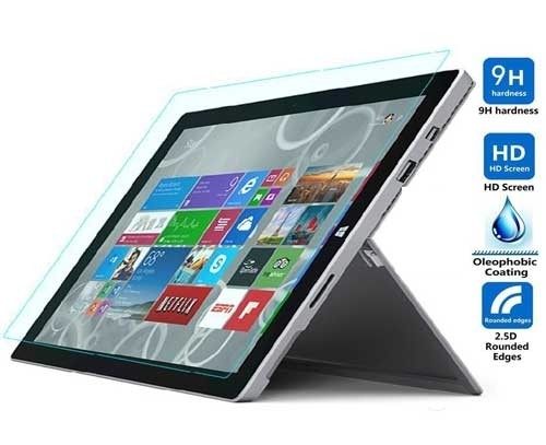 این گلس به اندازه ای شفاف و باریک می باشد که ممکن است وجود این گلس را روی صفحه نمایش دستگاه خود متوجه نشوید ، در این گلس از پوشش ضد تابش نور استفاده شده است تا شما در حین کار با تبلت سرفیس پرو در محیطهای باز یا نورانی دچار مشکل نشوید.،همچنین در این گلس از پوشش ضد خش و لایه های فیلتر اشعه ماوراء بنفش استفاده شده است، وجودلایه های فیلتر اشعه ماوراء بنفش باعث میشود در هنگام کار کردن طولانی با تبلت سرفیس چشم شما دچار خستگی و خشکی نشود .