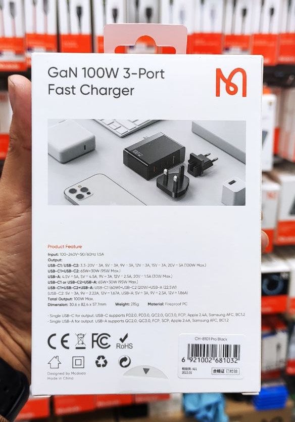 آدابتور شارژ دیواری فست شارژ 100 وات Mcdodo CH-8101 با قابلیت پشتیبانی از انواع فناوری های شارژ سریع و بهرهمندی از تکنولوژی جدید مواد نیمه هادی گالیوم نیترید (GaN) که مک دودو با توسعه و استفاده از این تکنولوژی توانسته شارژری تولید کند که ابعاد آن کوچک، ولی قدرت بسیار زیادی دارد.