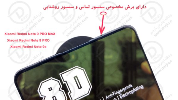 گلس فوق در قسمت بالایی دارای برش مخصوص حسگر و سنسور های تماس و روشنایی دارد و هیچ گونه اختلالی روی این سنسور ها نخواهد گذاشت گلس فولِ رنگی و آینهای 8D شیائومی ردمی نوت 9 اس | Redmi Note 9S