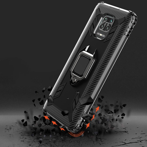 گارد محافط و ضد ضربه رینگی حلقه انگشتی طرح Bakeey قویتر از قویتر !! مخصوص گوشی شیائومی ردمی نوت 9 اس – Xiaomi Redmi Note 9SCarbon Fiber Pattern Armor Shockproof PC Protective Case Redmi Note 9S