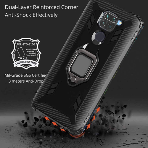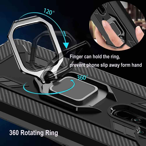 گارد محافط و ضد ضربه رینگی حلقه انگشتی طرح Bakeey قویتر از قویتر !! مخصوص گوشی شیائومی ردمی نوت 9 – Xiaomi Redmi Note 9Carbon Fiber Pattern Armor Shockproof PC Protective Case Redmi Note 9