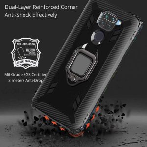 گارد محافط و ضد ضربه رینگی حلقه انگشتی طرح Bakeey قویتر از قویتر !! مخصوص گوشی شیائومی ردمی 10 ایکس 4 جی – Xiaomi Redmi 10X 4GCarbon Fiber Pattern Armor Shockproof PC Protective Case Redmi 10X 4G